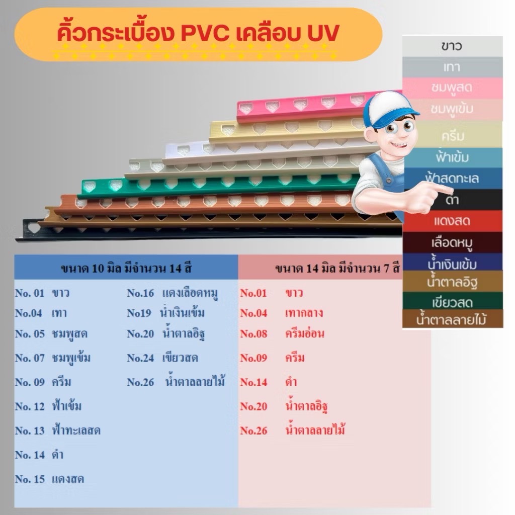 – ขนาด 10 มม. ยาว 2 เมตร ใช้กับกระเบื้องทั่วไป