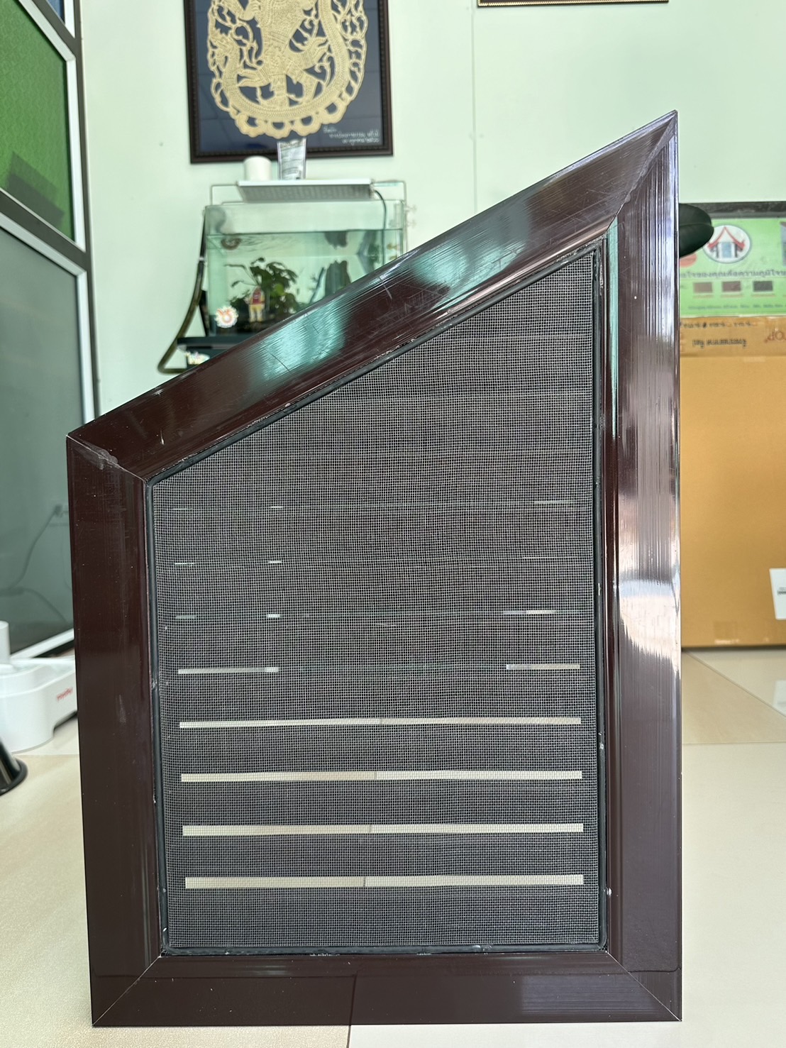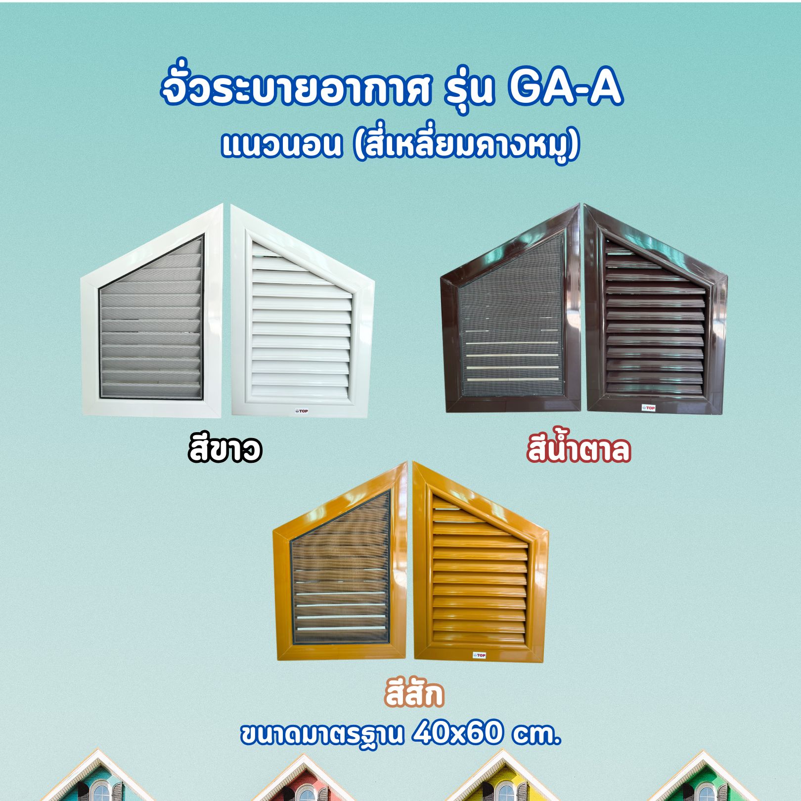 รายละเอียด – ขนาด 40x60x3.7cm. – มีให้เลือก 3 สี สีขาว, สีสัก, สีน้ำตาล – มีมุ้งลวดกันแมลง