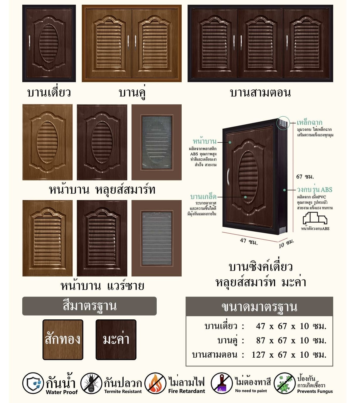 บานเดี่ยว ขนาด (ก x ล x ส) 47 x 10 x 66 cm.