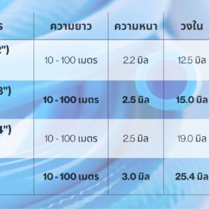 - มีความยาวให้เลือก 10, 15, 20, 25, 30, 50 และ 100 เมตร